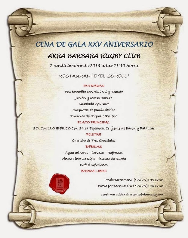 Confirma tu asistencia antes del 4 de diciembre de 2013 en socios@akrarugby.com