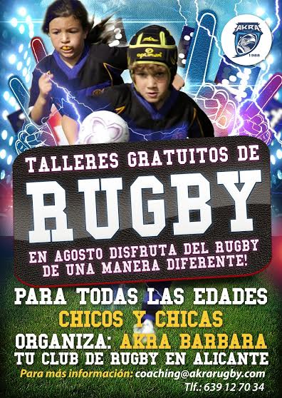 05/08/2015Después de la magnífica experiencia del año pasado, este verano regresan, a partir del martes 4 de agosto, los TALLERES DE RUGBY del Akra Barbara R.C. de Alicante.