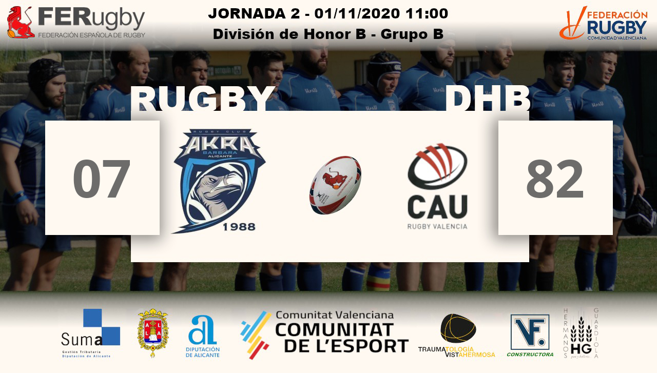 Sin embargo, los buitres del Akra salieron a por todas, a pesar del primer ensayo de los del CAU, que llegó a los 5 minutos. A partir de ahí, el Akra comenzó a crecerse hasta que, tras un balón tapado por el primer centro Juan, él mismo apoyó el oval sobre la zona de marca valenciana, y con la transformación Zeus, el empate subía al marcador.